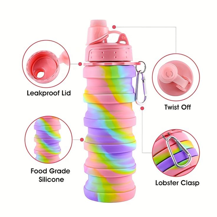 بسیار سبک بدون مواد شیمیایی بدون مزه و بو قابل شستشو در ماشین ظرفشویی و بسیار انعطاف پذیر است. ارتفاع قمقمه قابل تنظیم هست در حالت بسته 300 میل گنجایش و در حالت باز 500 میلی لیتر گنجایش دارد. این محصول نشتی نداشته و برای نوشیدنی سرد و گرم قابل استفاده است. این محصول را به راحتی میتوانید داخل کیف گذاشته یا از کیف یا کوله آویزان کنید.