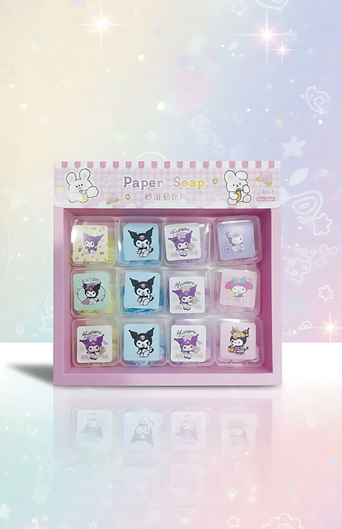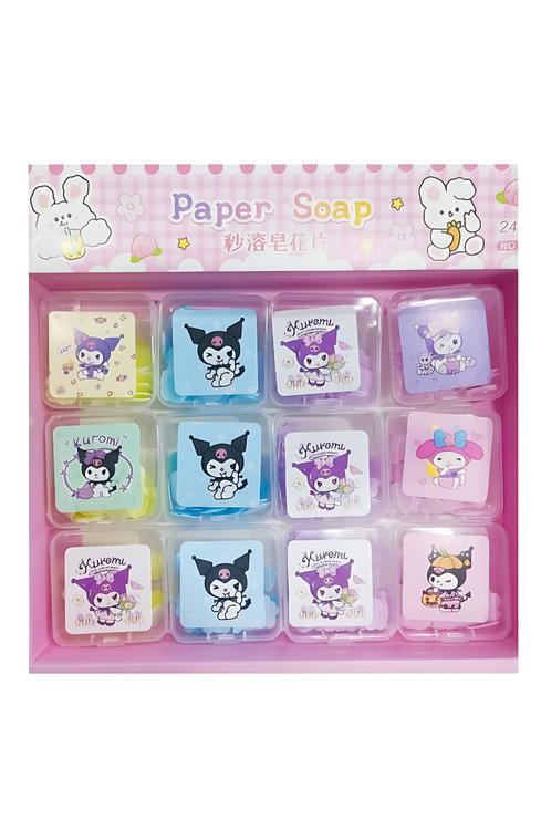 صابون ورقه ای شامل یک پک درب دار پلاستیکی است که درون آن تعداد زیادی صابون فانتزی است که کافی است فرزند شما چند عدد از این کاغذ ها را بر روی دست خود گذاشته و کمی دست خود را با آب نمناک نماید سپس دست ها را به یکدیگر مالش داده تا صابون کف کرده و کثیفی را از روی دست از بین ببرد.